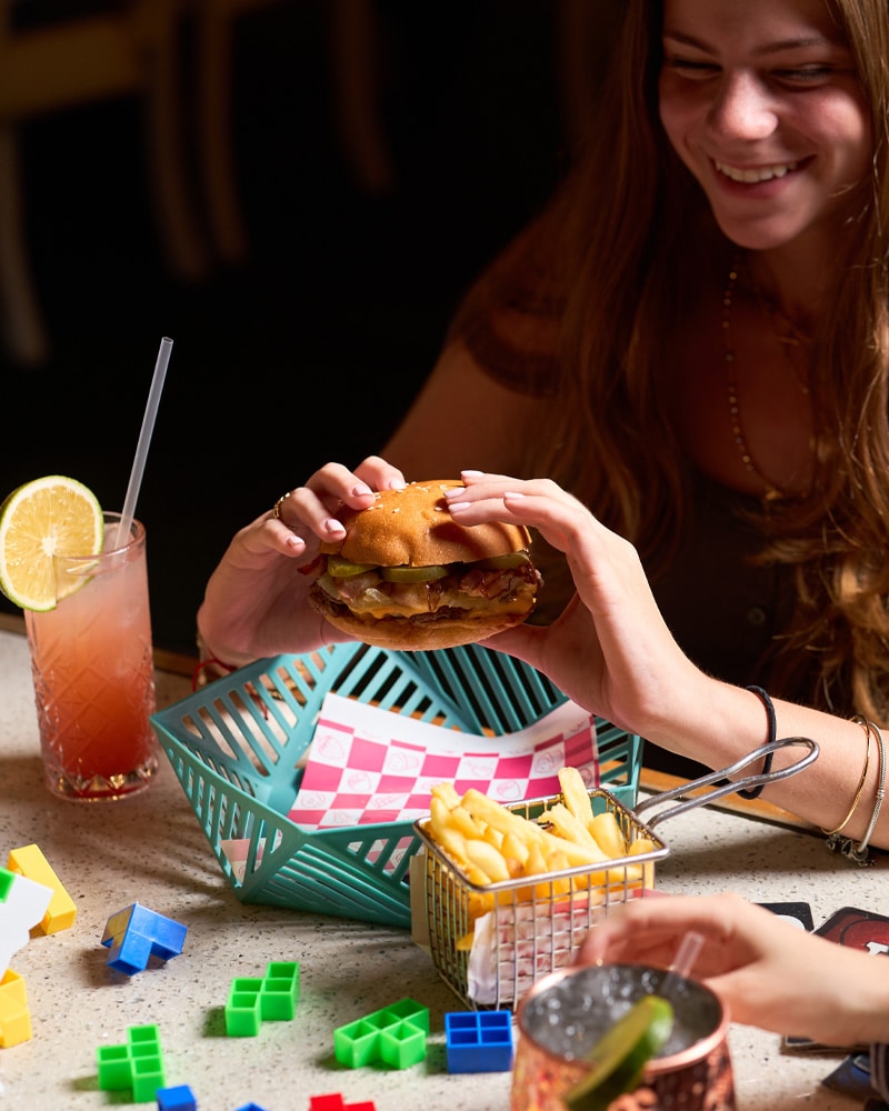 Entradas para compartir, platos principales y bebidas como cócteles, cervezas y refrescos. Todo pensado para acompañar tu partida perfecta.